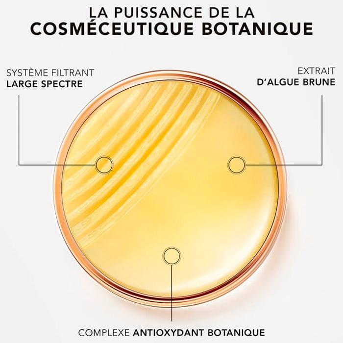Esta fórmula previene eficazmente la aparición de arrugas, manchas y flacidez, mientras que el extracto de alga parda aporta una acción antiedad profunda y reparadora.