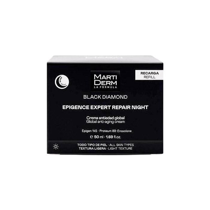 Descubre la revolución del cuidado nocturno antiedad con MartiDerm Black Diamond Epigence Expert Repair Night Recarga.
