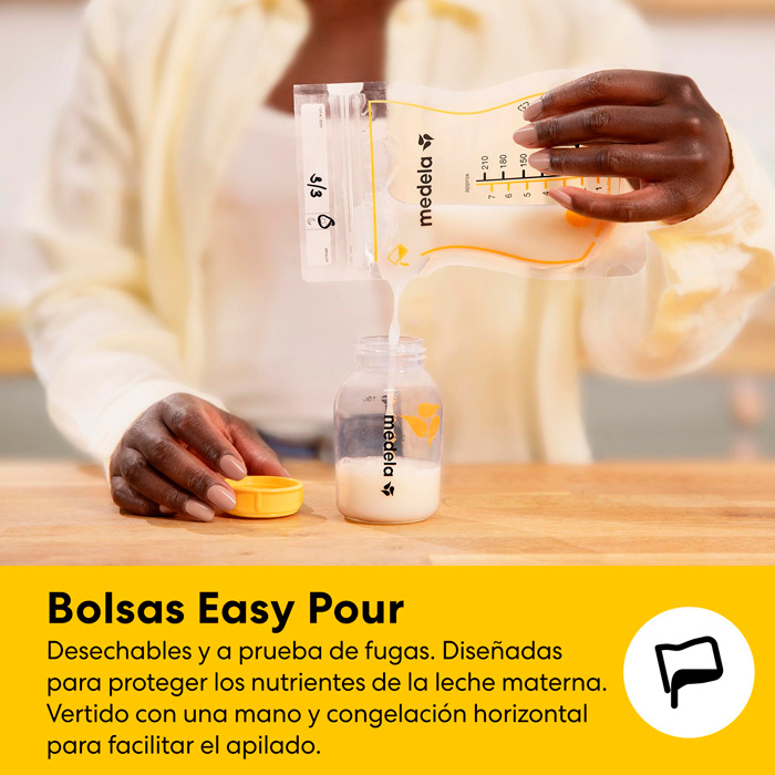 4 Bolsas Easy Pour: Bolsas de almacenamiento de leche materna con sistema de vertido fácil.