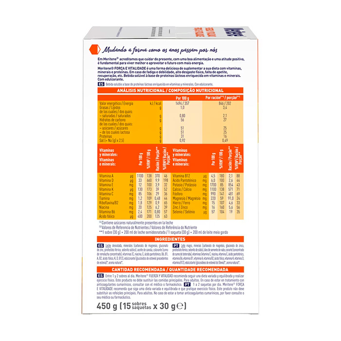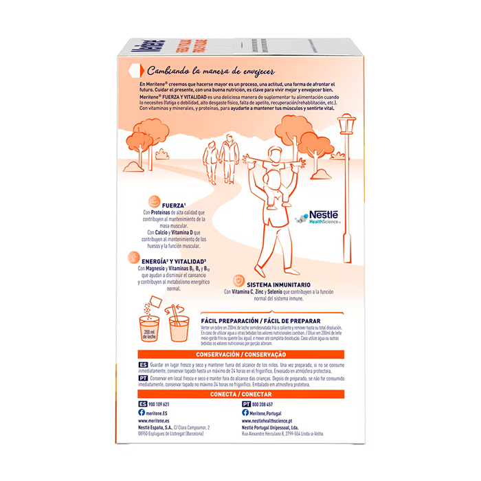 Meritene Fresa es un suplemento nutricional con proteínas, vitaminas y minerales que aportan: