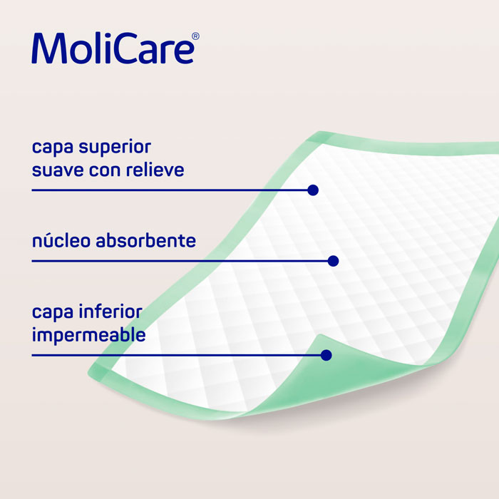 Molicare Premium Bed Mat 60x90 son unos empapadores desechables son la solución ideal para la protección de camas, sillas, sofás y otras superficies contra fugas de líquidos.