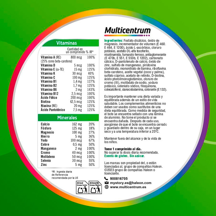 Tomar 1 comprimido al día de Multicentrum Adultos 30 Comprimidos.