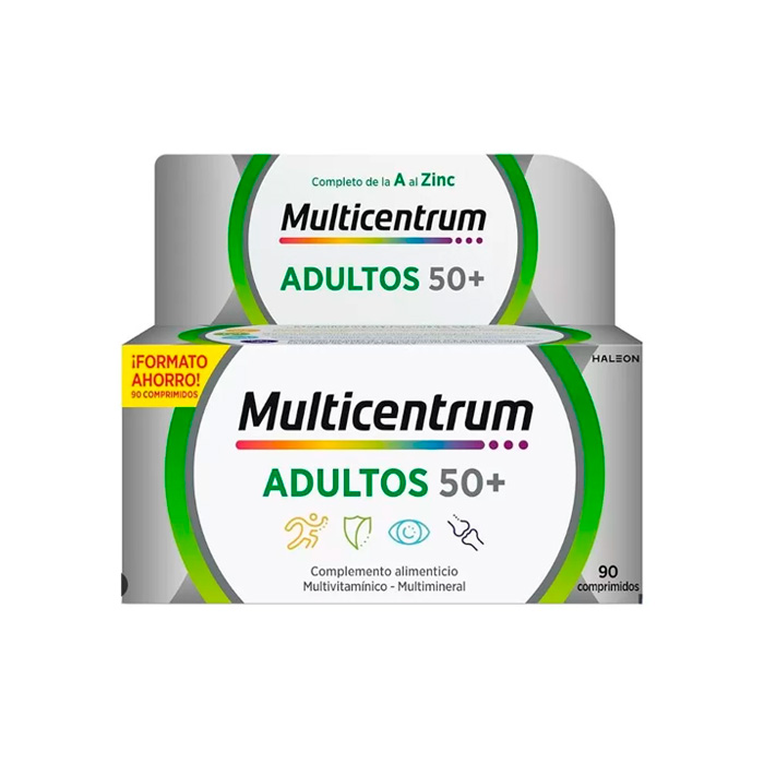 Multicentrum Adultos 50+ es un complemento alimenticio completo especialmente diseñado para cubrir las necesidades nutricionales de las personas mayores de 50 años.