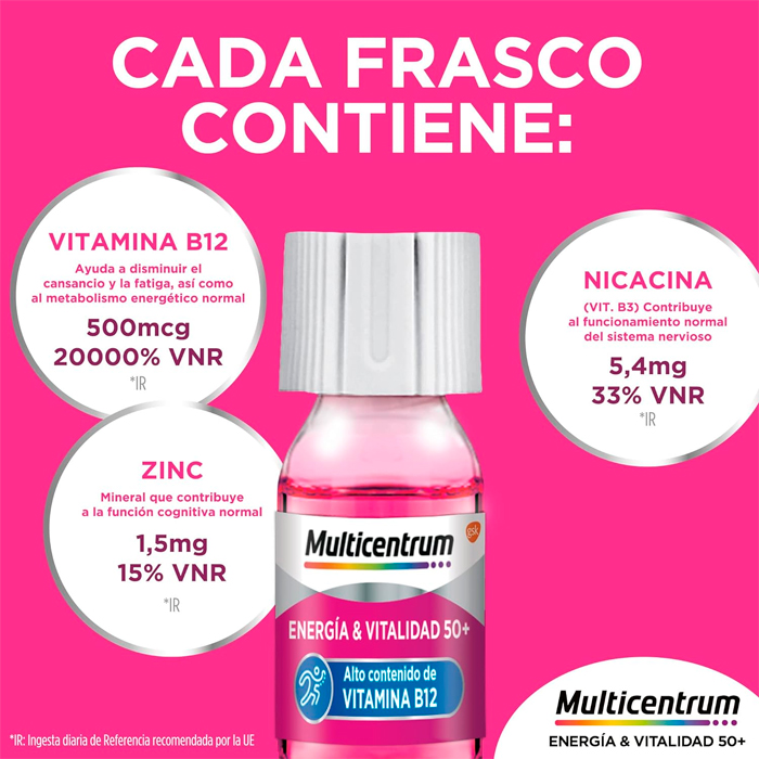 Multicentrum Energía & Vitalidad 50+ es un complemento alimenticio para adultos mayores de 50 años, indicado para ayudar a disminuir el cansancio y la fatiga, así como al metabolismo energético normal.