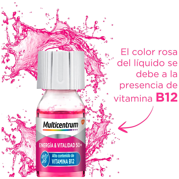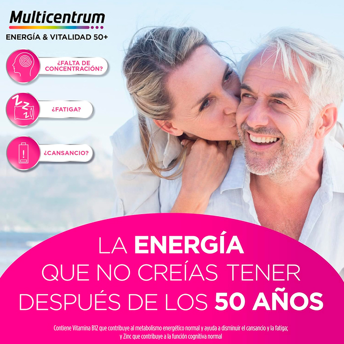 Multicentrum Energía & Vitalidad 50+ es un complemento alimenticio para adultos mayores de 50 años, indicado para ayudar a disminuir el cansancio y la fatiga, así como al metabolismo energético normal.