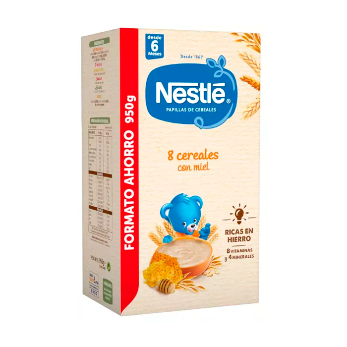 La Papilla Nestlé 8 Cereales con Miel ofrece una opción nutritiva y deliciosa para los bebés a partir de los 6 meses, con las siguientes características: