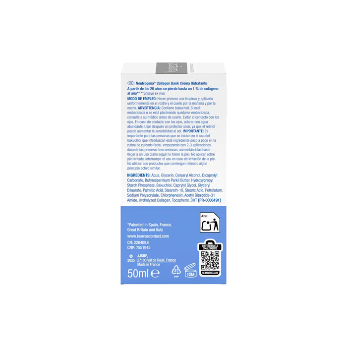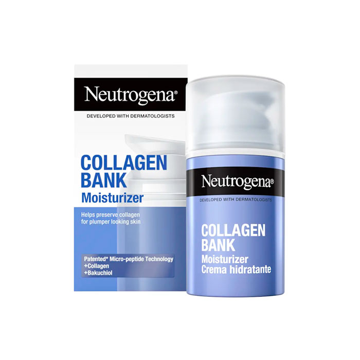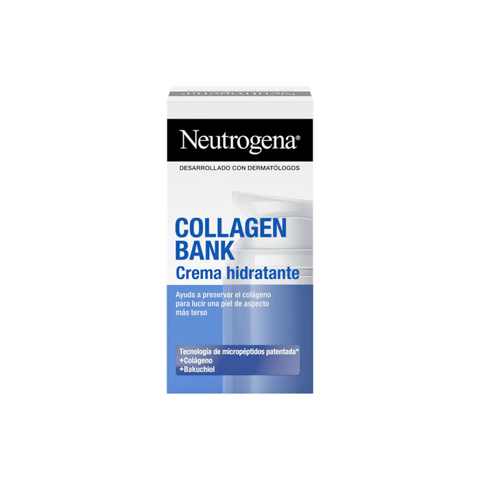 Neutrogena Collagen Bank Crema Hidratante es un avanzado tratamiento facial de uso diario diseñado para potenciar la producción de colágeno y mejorar los signos del envejecimiento.