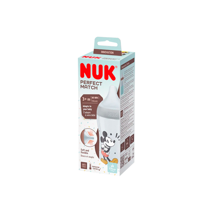 El Biberón Perfect Match Nuk contiene la tetina perfect match de silicona, diseñada para proporcionar una experiencia de alimentación cómoda y natural, adaptándose a las necesidades únicas de tu pequeño.