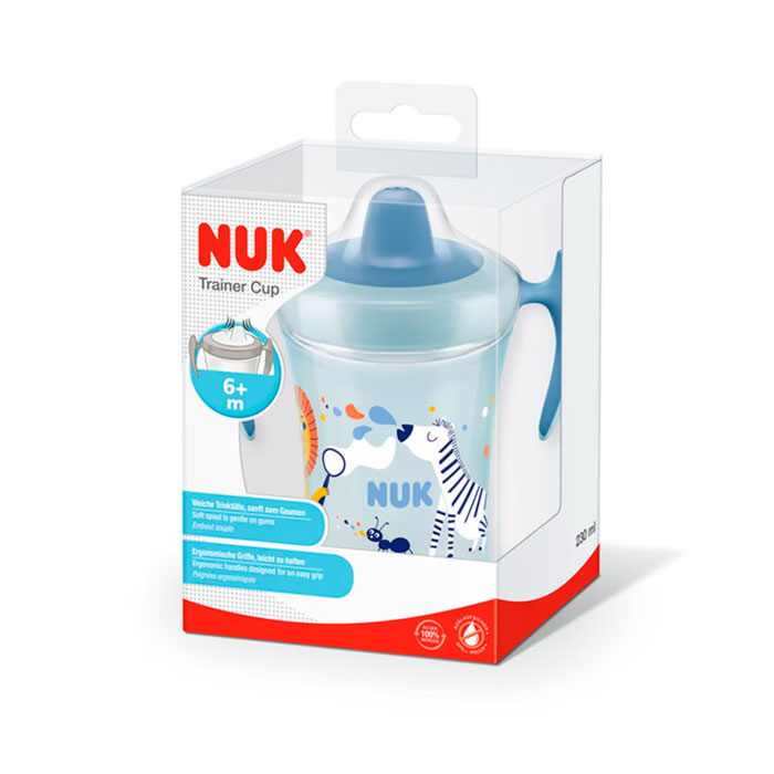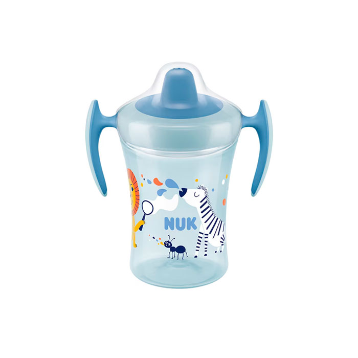 Nuk Trainer Cup Evolution es una taza de aprendizaje diseñada con asas ergonómicas para ayudar a la transición del biberón al vaso e incorpora una boquilla blanda para proteger las encías y el paladar.