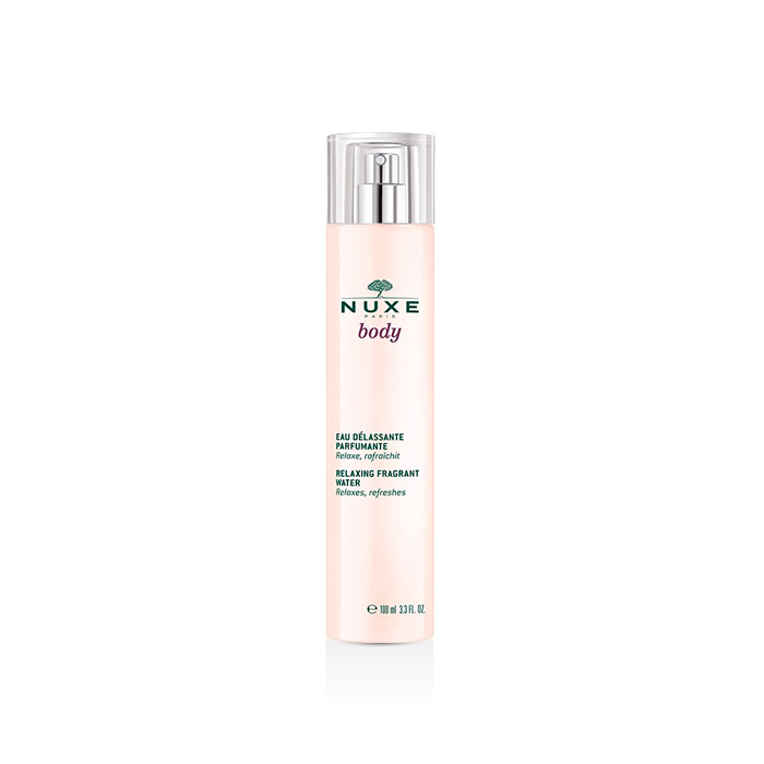 Vaporizar Nuxe Body Agua Relajante Perfumada 100ml sobre la piel.