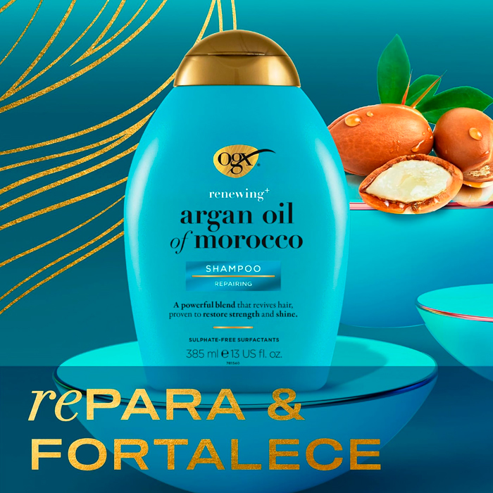 Aplicar Ogx Champú Aceite de Argán de Marruecos 385ml generosamente sobre el cabello mojado, masajear hasta crear espuma desde las raíces hasta las puntas y luego enjuagar bien el cabello. Después del champú, usar acondicionador. Para obtener un resultado óptimo utiliza en combinación con productos OGX.