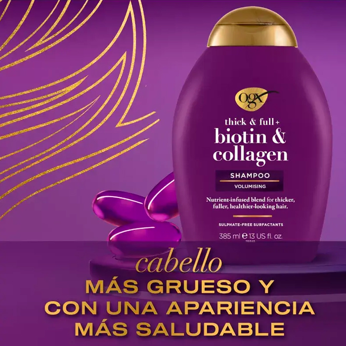 El Champú Biotina y Colágeno de Ogx es un producto diseñado específicamente para cabello fino y delicado.