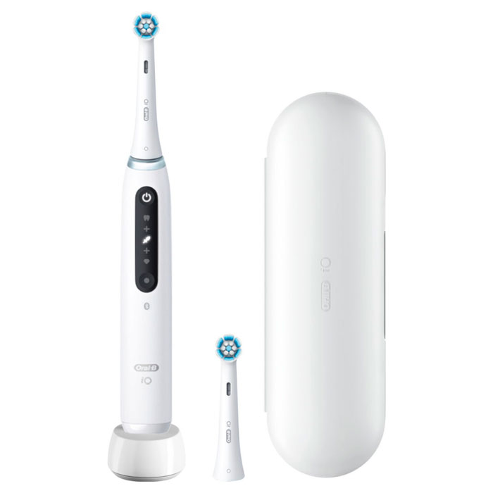 El Cepillo Eléctrico iO Serie 5 de Oral-B es una innovadora herramienta de higiene bucal en color blanco que combina tecnología avanzada y diseño ergonómico.