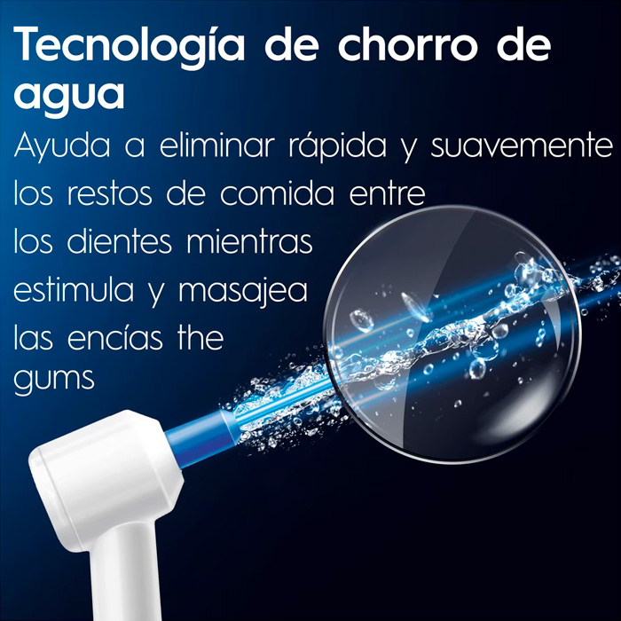 El irrigador Oral-B Oxyjet con tecnología de microburbujas, limpia en profundidad bajo la línea de las encías y ataca las bacterias dañinas.