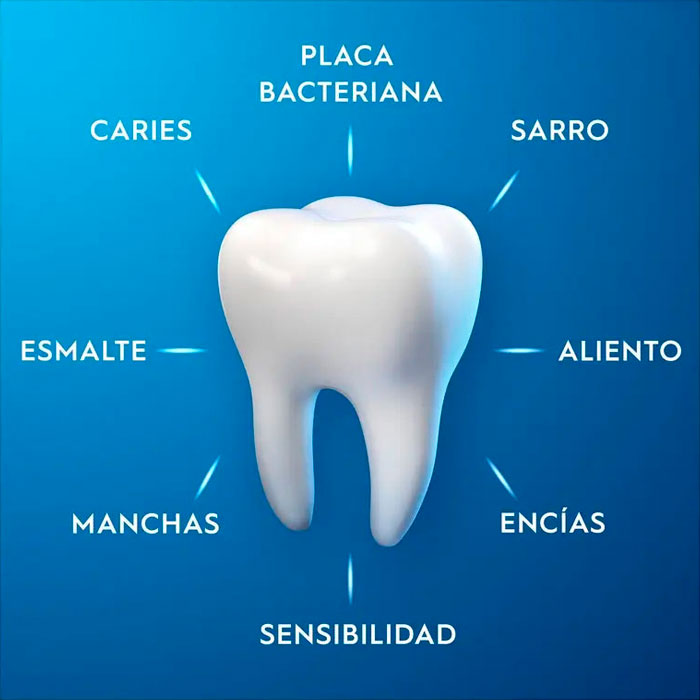 Protección 8 en 1: Aborda de forma completa los problemas bucales más comunes, como una solución integral.