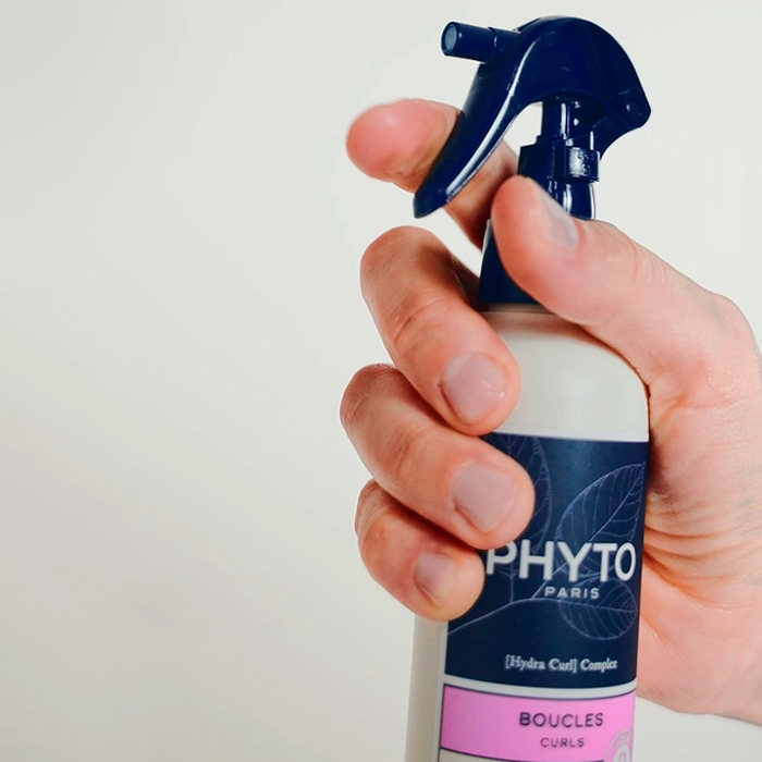 Para revitalizar los rizos entre dos lavados, utiliza Phyto Rizos Spray Revelador de Rizos 150ml en todo el cabello: