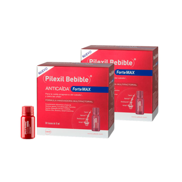 El Pack Duplo Pilexil Forte MAX Bebible 2x30 frascos es un complemento alimenticio con una fórmula innovadora multifactorial de máxima potencia.