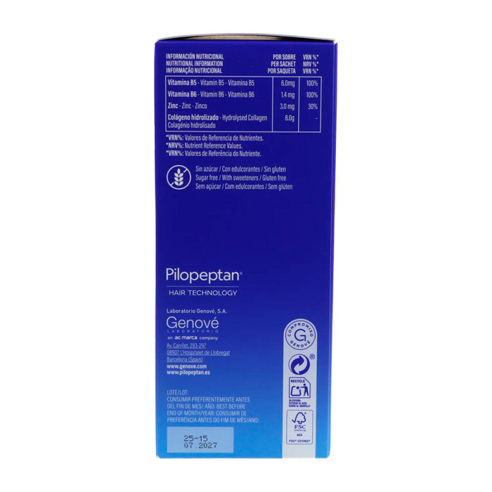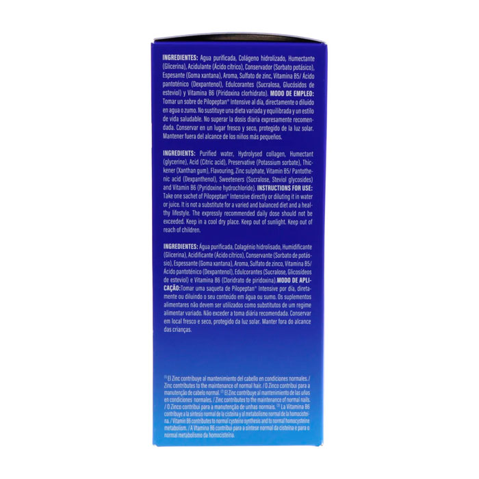 Tomar a diario 1 sobre de Pilopeptan Intensive Cabello y Uñas con el desayuno durante 15 días a 1 mes.