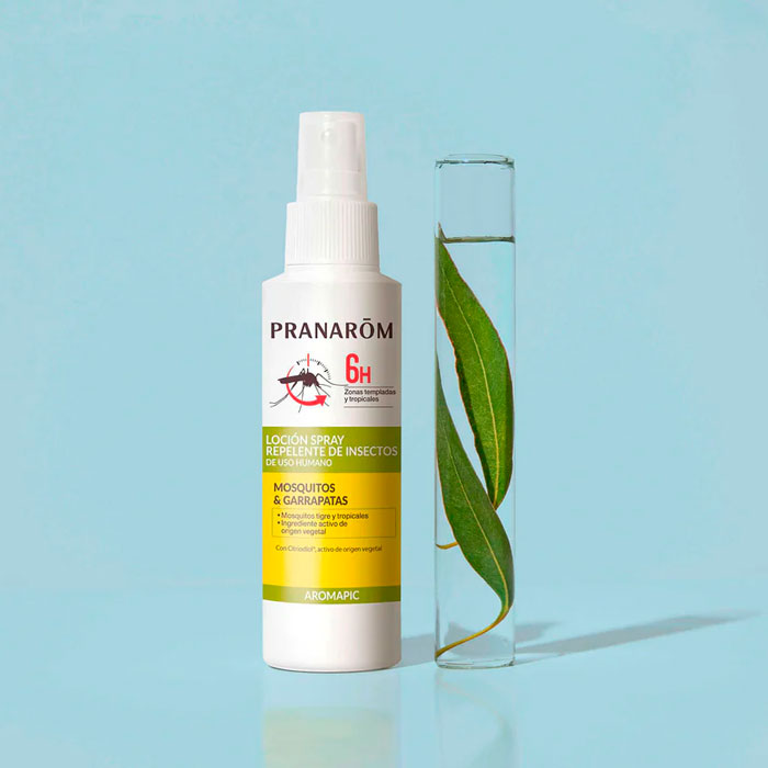 Pranarom Aromapic Loción Spray es un repelente de insectos de alta eficacia diseñado para ofrecer una protección integral de hasta 10 horas contra mosquitos (incluyendo el mosquito tigre) y garrapatas.