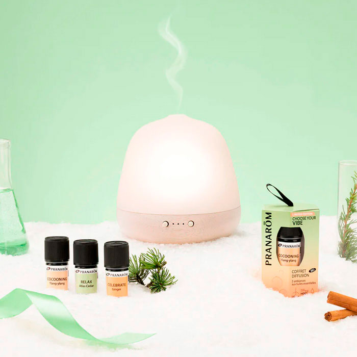 El Cofre Difusión de Pranarom, llamado Choose Your Vibe, ofrece 3 sinergias de aceites esenciales 100% biológicos listas para difundir.