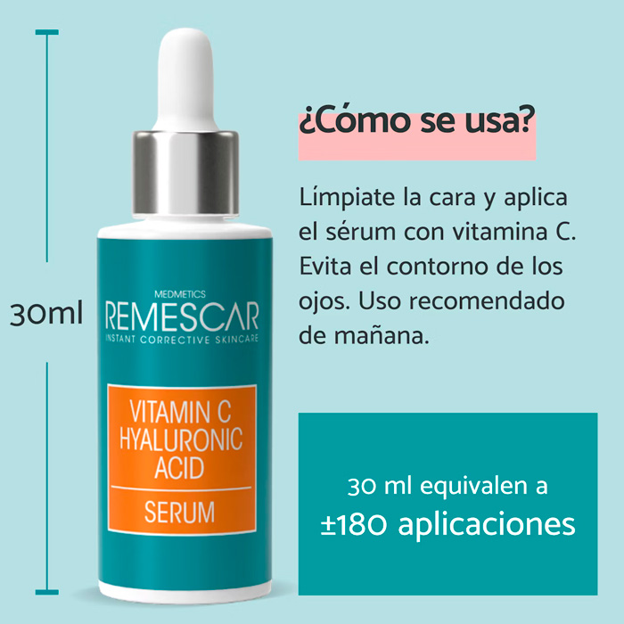 Se recomienda su uso sólo una vez al día: utilizar Remescar Vitamina C & Ácido Hialurónico Suero Reparador por la mañana.