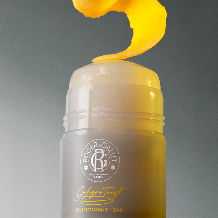 El Desodorante Stick Cologne Twist de Roger&Gallet te ofrece una protección eficaz y duradera durante 24 horas, combinada con una fragancia masculina y envolvente.