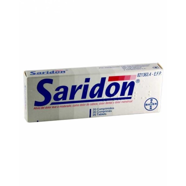 Saridon es una asociación de paracetamol y propifenazona que actúan sobre el dolor y la fiebre y de cafeína que tiene una acción estimulante del sistema nervioso central.