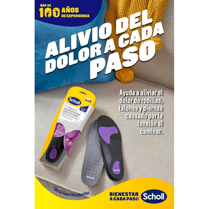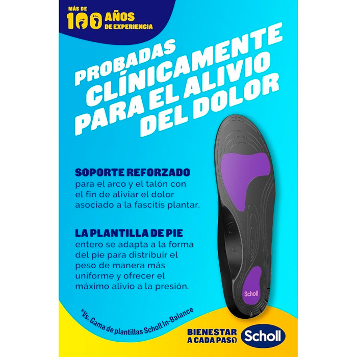 Las Plantillas In-balance Fascitis Plantar Scholl están diseñadas con un soporte adicional en el talón y el arco para aliviar el dolor asociado a la fascitis.