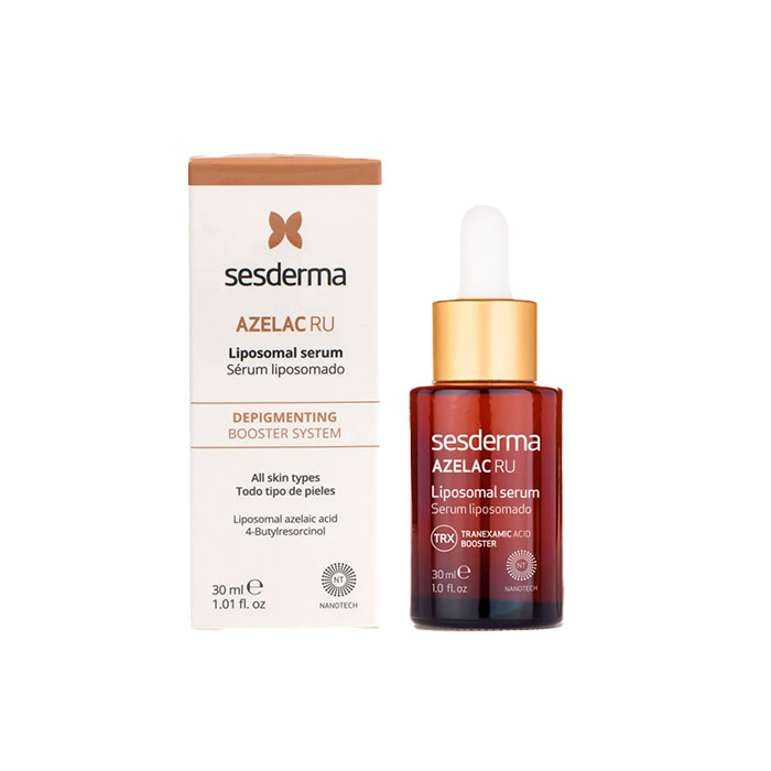 Sesderma Azelac RU Liposomal Sérum es un tratamiento intensivo despigmentante formulado con una alta concentración de activos encapsulados para una máxima eficacia.