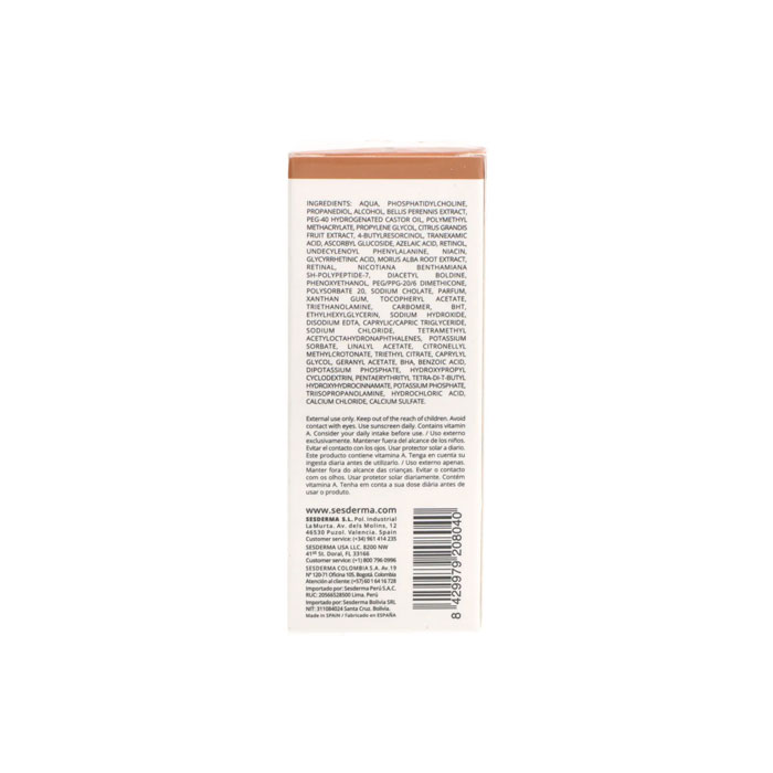 Gracias a la tecnología Nanotech exclusiva de Sesderma, los activos liposomados penetran profundamente y actúan directamente sobre el origen de las manchas (hiperpigmentaciones), ofreciendo resultados visibles.