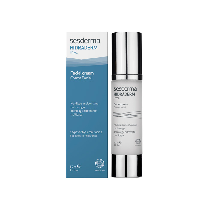 La Crema Facial Sesderma Hidraderm Hyal formulada con 3 tipos de ácido hialurónico, hidrata en profundida la piel del rostro con un efecto relleno de arrugas en superficie, y máximo confort e hidratación en capas más profundas de la piel.
