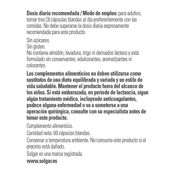 Al proporcionar un equilibrio de omega-3, 6 y 9, Solgar ofrece un soporte nutricional completo que va más allá de un simple suplemento de omega-3.