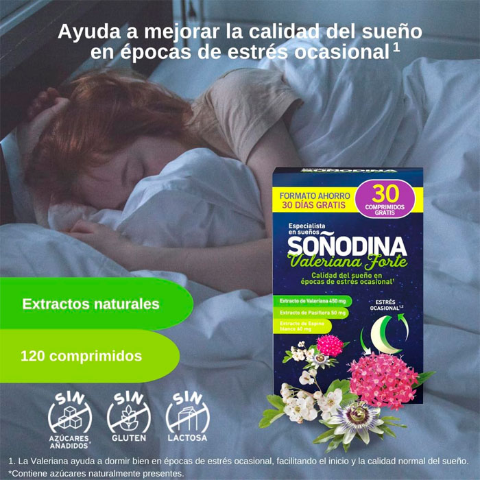 Soñodina Valeriana Forte es un complemento alimenticio diseñado para quienes necesitan un apoyo natural para conseguir un descanso tranquilo y de calidad, especialmente en épocas de estrés ocasional.