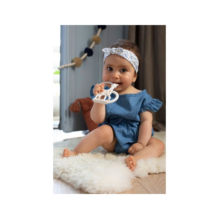 Sophie la Girafe Anillo Dentición Pure Soft está fabricado en caucho 100% natural procedente de la savia de los árboles del caucho. Presentado en una bonita caja de materiales reciclables, con ventana transparente, decorada con un adorable lazo Sophie la girafe.