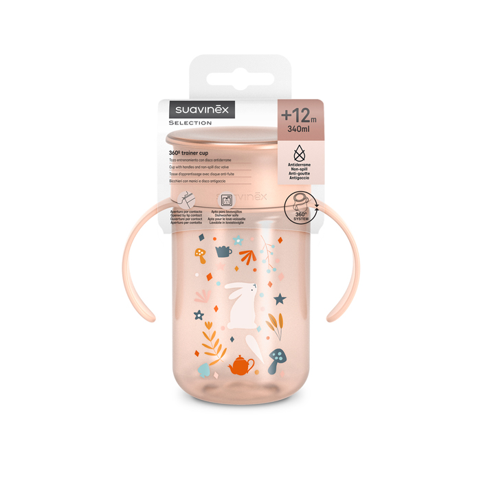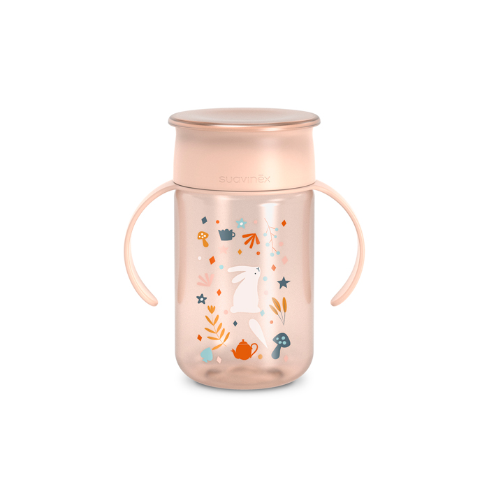 Suavinex 360º Trainer Cup Wonderland es un vaso está diseñado para facilitar el aprendizaje de la bebida independiente en bebés a partir de los 12 meses.