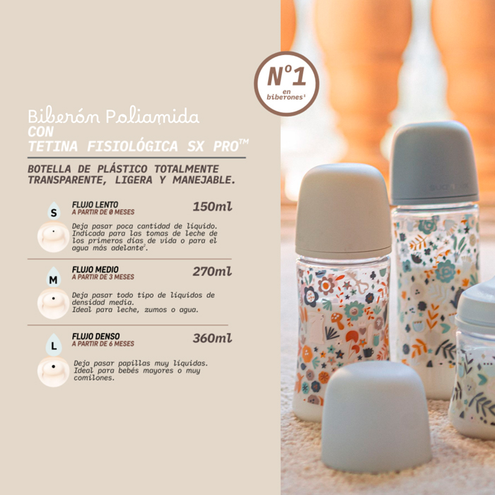 • Capacidad 270ml: Ideal para las tomas a partir de los 3 meses.
