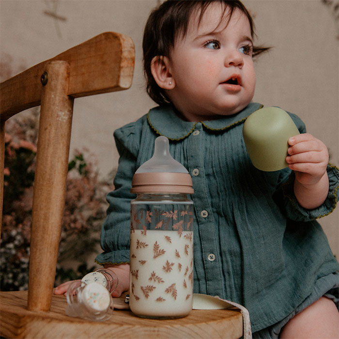 Este biberón de 120ml, de la delicada colección Poetry en tono verde, es perfecto para recién nacidos y sus primeros meses.