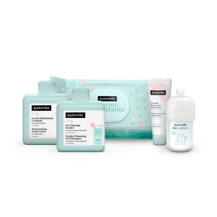El gel-champú de Suavinex limpia de manera suave la piel y el cabello del bebé gracias a su fórmula syndet (sin jabón).