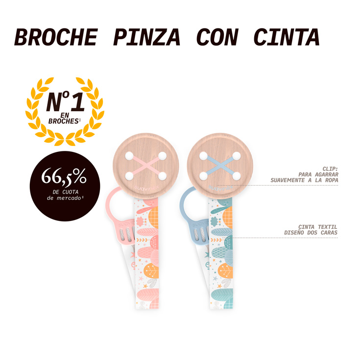 El Broche Pinza Prints +0m Suavinex está diseñado para sujetar el chupete a la ropita evitando que caiga al suelo y se ensucie o pierda. Incluye cinta textil decorada por ambos lados.