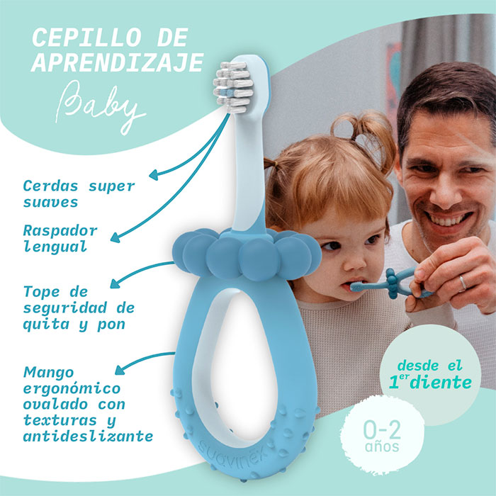 El Cepillo Dental de Aprendizaje Suavinex Baby Azul es el compañero ideal para iniciar a tu bebé en el importante hábito de la higiene bucal.