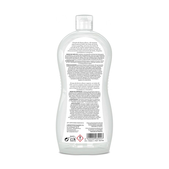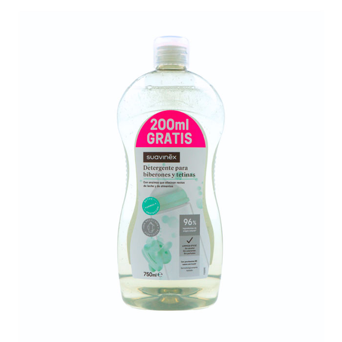 Suavinex Detergente Para Biberones y Tetinas es un detergente específicamente formulado para garantizar una higiene adecuada de los utensilios de alimentación de tu bebé.