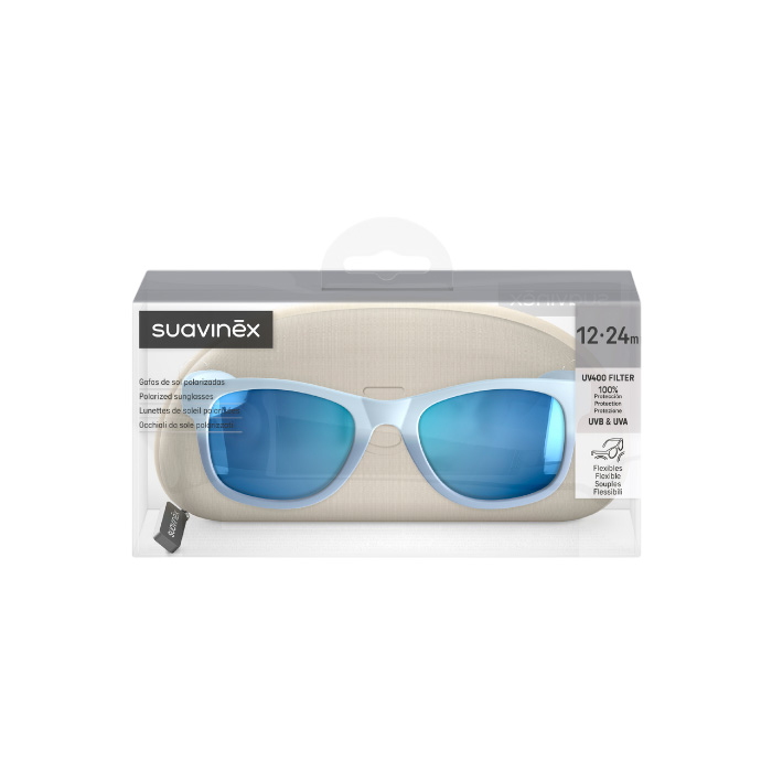 Las Gafas de Sol Polarizadas de Suavinex color azul están indicadas para los niños de 12 a 24 meses.