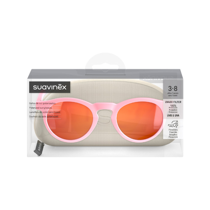 Las Gafas de Sol Polarizadas Redondas de Suavinex color rosa están indicadas para niños de 3 a 8 años.