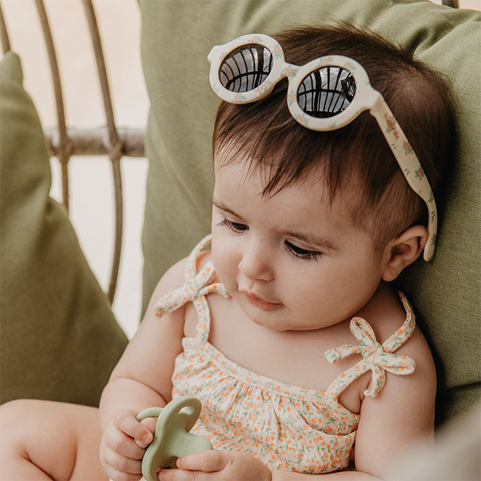 Además, su montura destaca por unas patillas flexibles y un peso extraordinariamente ligero, permitiendo que el bebé las lleve con total comodidad sin notar presión en su rostro.