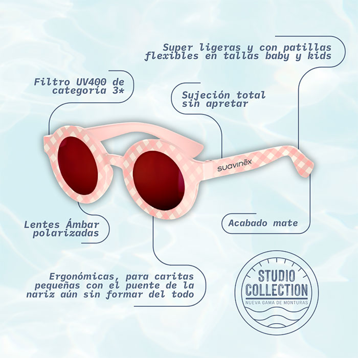 Las Gafas de Sol Polarizadas Suavinex Studio Collection Rosa y Marrón son el accesorio definitivo para proteger la salud visual de niños y preadolescentes de entre 8 y 14 años.
