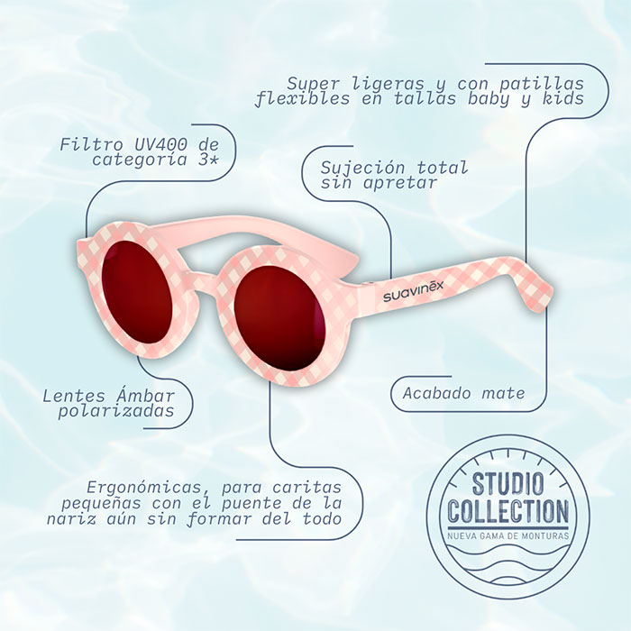 Además, su montura destaca por unas patillas flexibles y un peso extraordinariamente ligero, permitiendo que el bebé las lleve con total comodidad sin notar presión en su rostro.