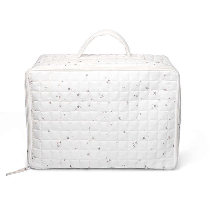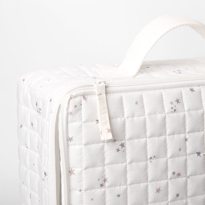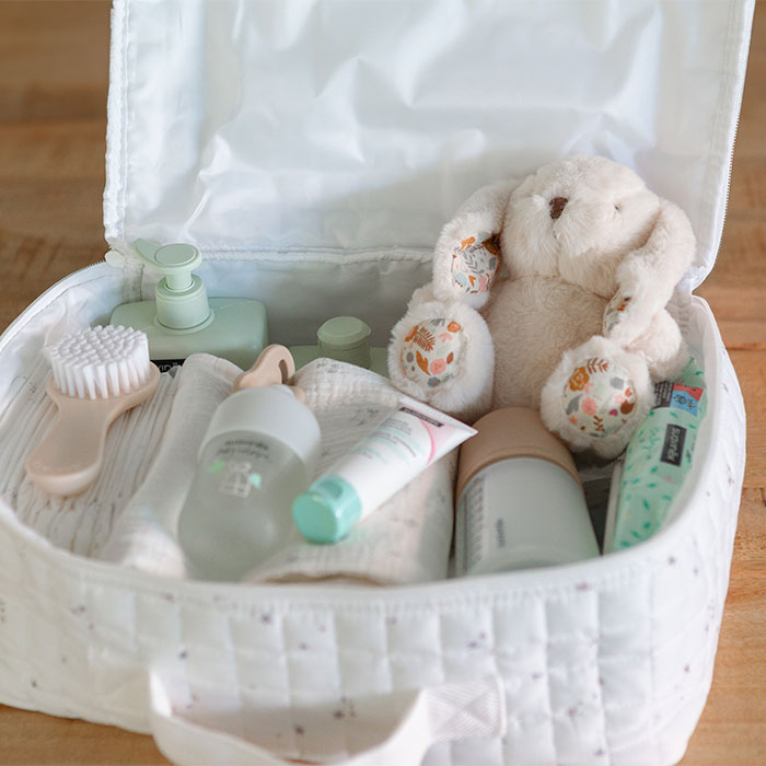 Todo viene presentado en una preciosa maleta que, además de contener estos productos, se convierte en un bonito recuerdo o un práctico lugar para guardar los pequeños tesoros del bebé.