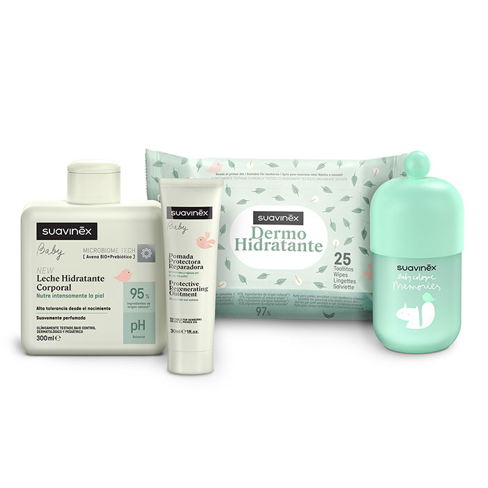 Este kit reúne los productos esenciales para la hidratación, limpieza y protección del recién nacido, formulados específicamente para pieles sensibles y frágiles desde el primer día de vida.