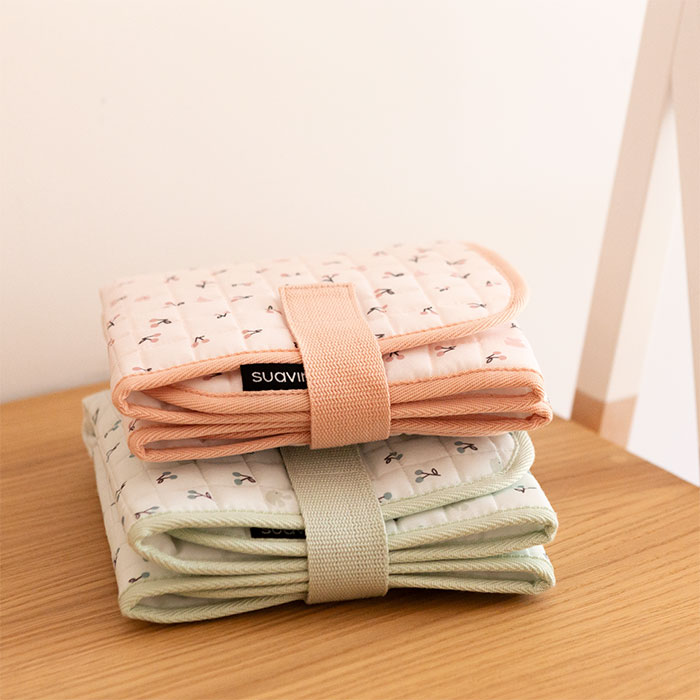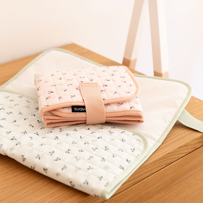 Práctico para viajes: El cambiador plegable Rosa facilita los cambios de pañal en cualquier superficie plana fuera de casa.