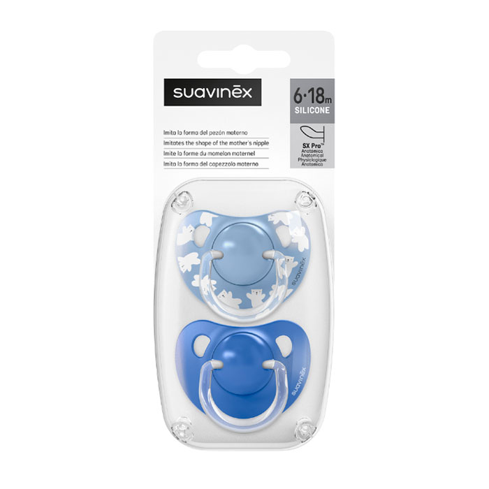 El Pack de Chupetes Suavinex Prints Wild & Free Tetina Anatómica Silicona 6-18m Azul está diseñado para bebés de 6 a 18 meses.